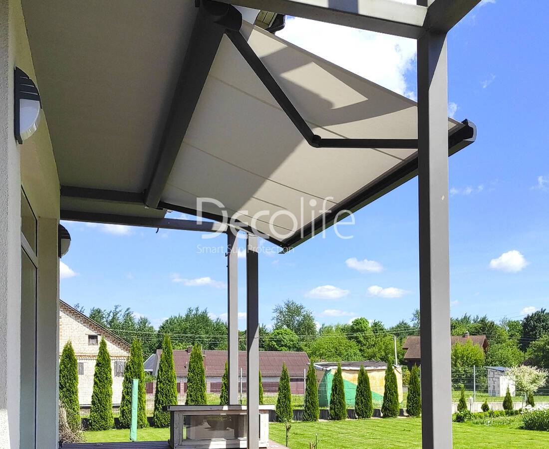 Тентовая пергола Decolife Basic&Pro New c маркизами G400, реализовано партнером "TENT VERTEX" - г. Алматы, Парк Кок-тобе