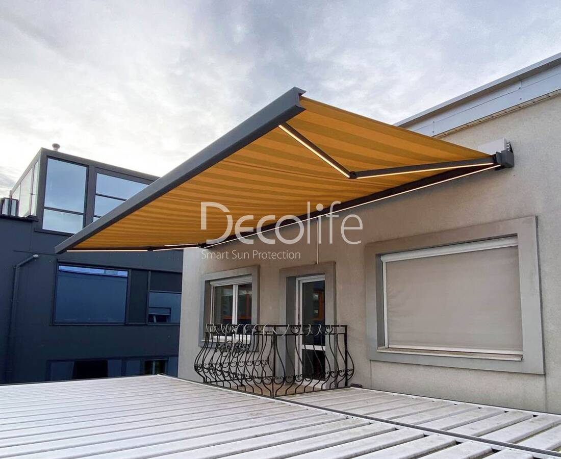 Маркиза кассетная Decolife G600 с подсветкой в локтях и коробе - Минск