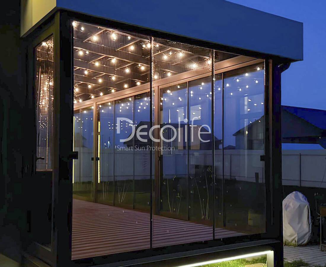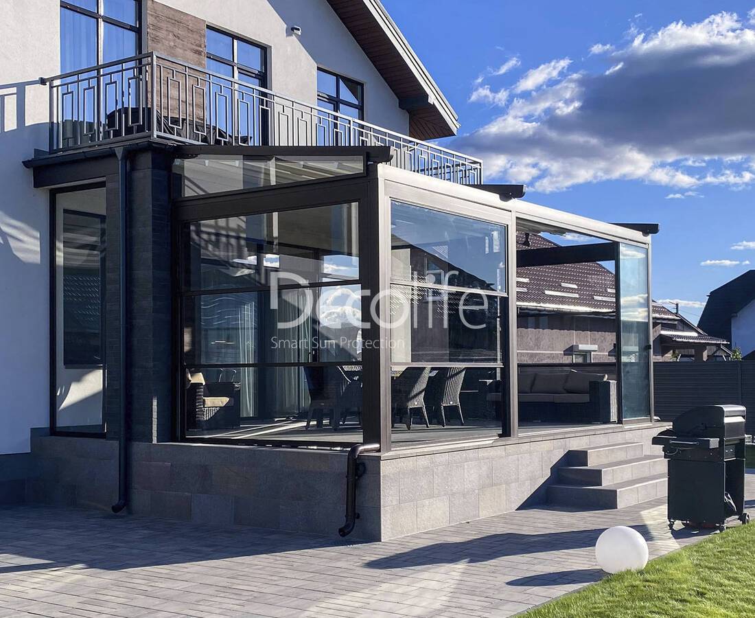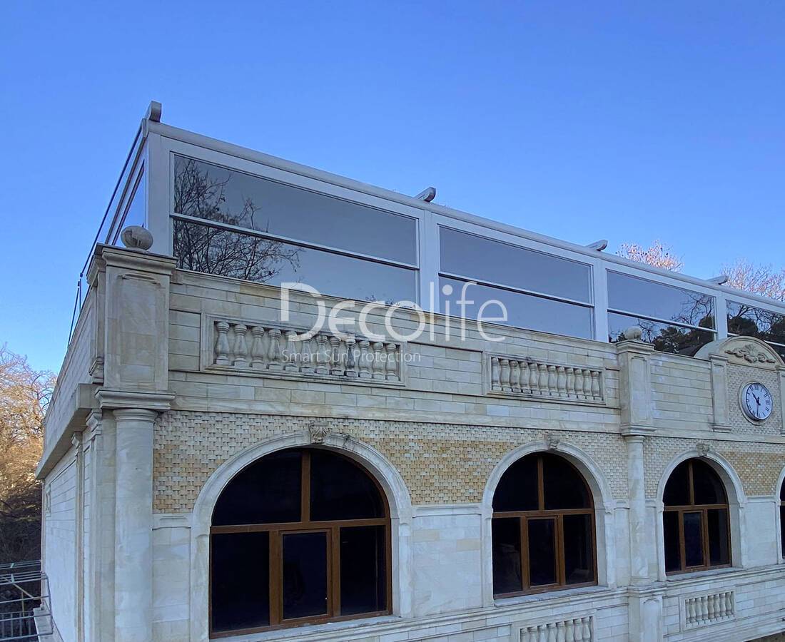 Пергола Decolife B500-25П + гильотинное остекление W300 + Тентовая пергола - г. Ялта