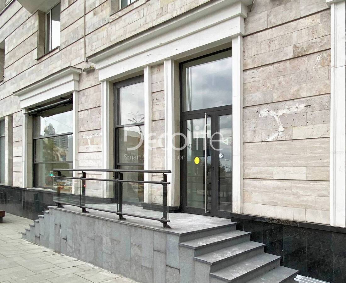 Гильотинное остекление Decolife W700 и входная группа система FW75 с терморазрывами (тёплые серии) - г. Москва, ресторан "Pino"