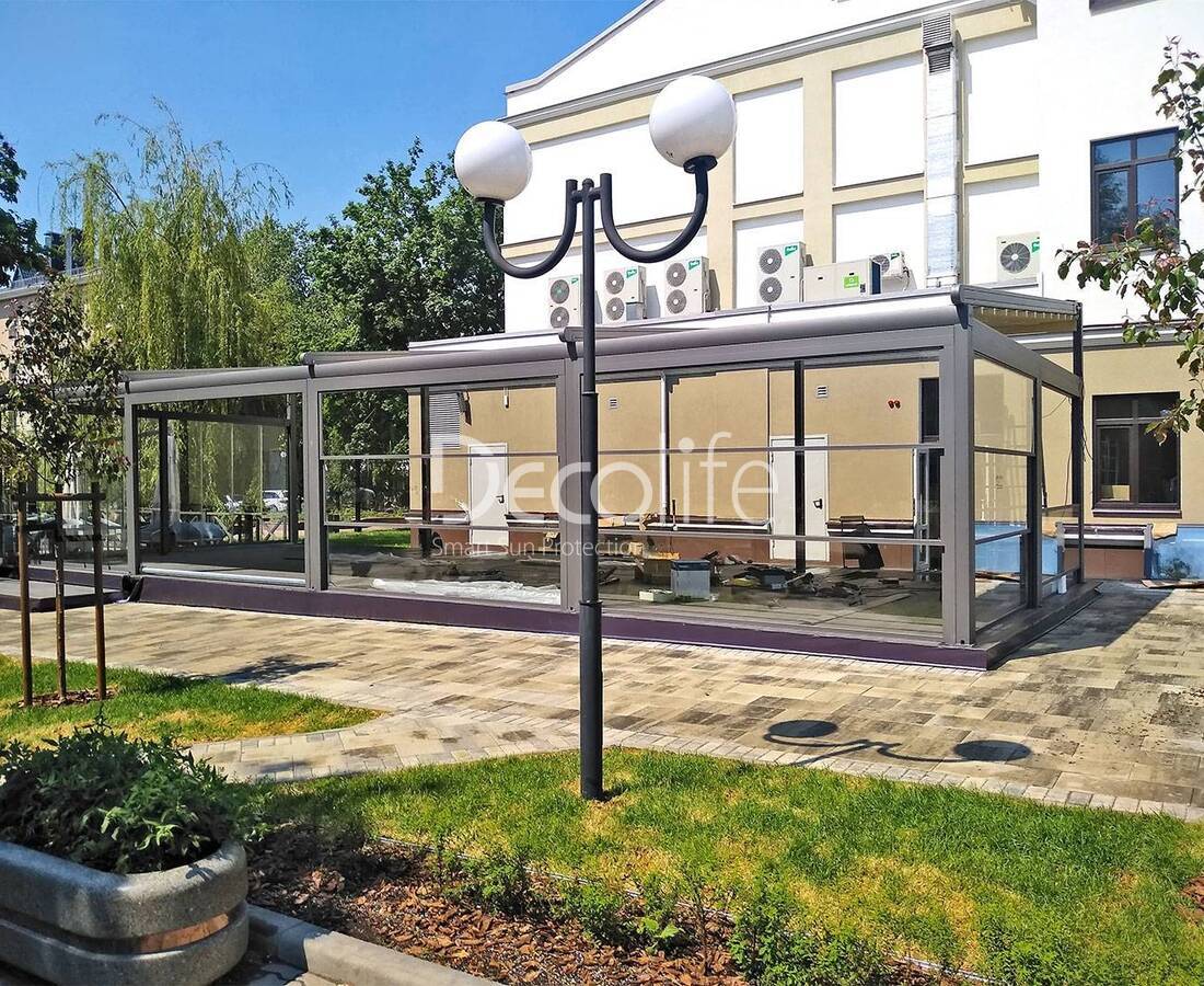 Пергола Decolife B700-25С + остекление FC58, S200 - Лаунж зона "Яндекс", БЦ "Феррум"