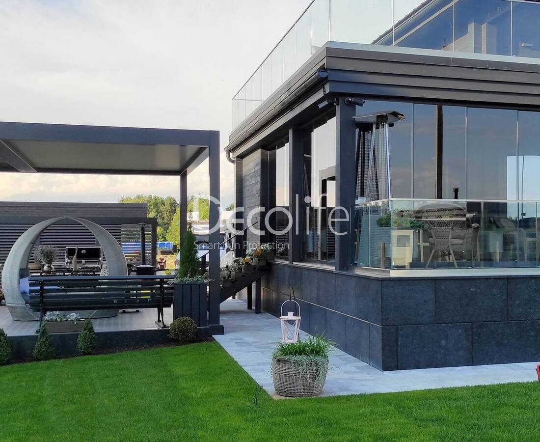 Пергола Decolife B600 PIR, остекление S200, ограждение B50 - г. Браслав